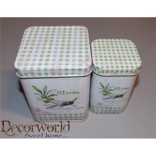 Doboz szögletes olívás bádog 6,5x10cm krém-zöld-lila