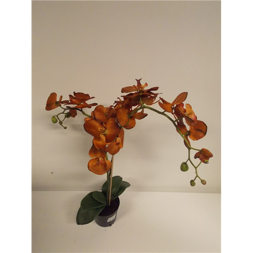 Phalaenopsis Orchidea ültetett cserépben 2 szálas textil okker narancs 60-70cm