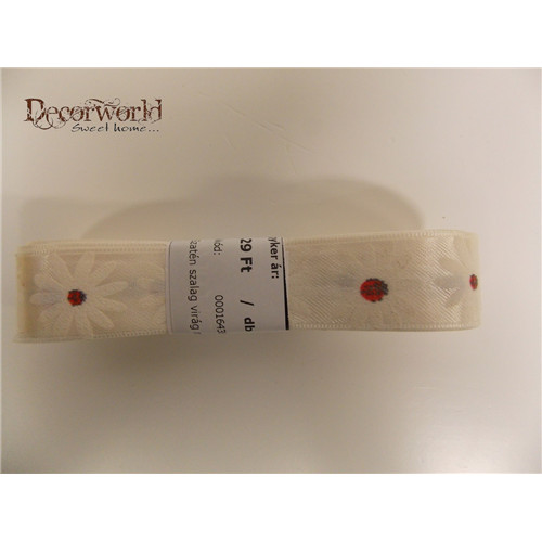 Szatén szalag virág mintás 25mmx10m Ekrü