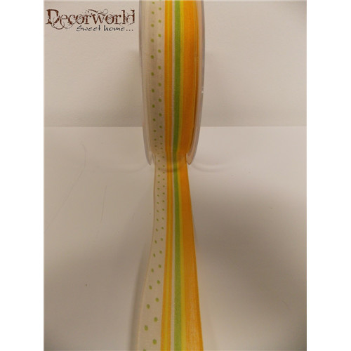 Textil szalag drótos csíkos-pöttyös narancssárga-sárga-zöld-fehér 25mmx10m