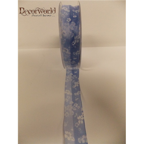 Textil szalag drótos virág mintás kék-fehér 25mmx10m