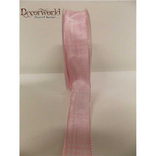 Textil szalag drótos kockás rózsaszín-fehér 25mmx10m