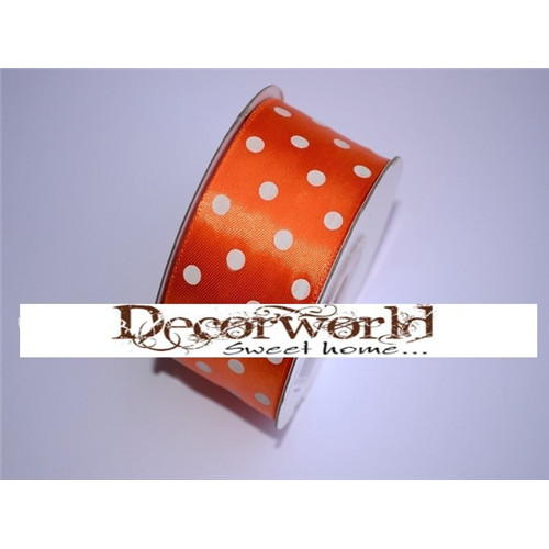Szatén szalag pöttyös narancssárga 38mm x 12yard