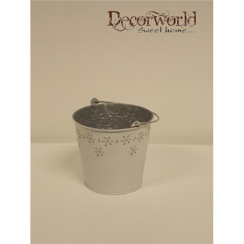 Vödör cink nyomott virág mintás fehér H10