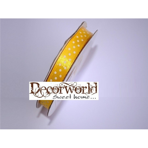 Szatén szalag pöttyös citromsárga 10mm x 12yard