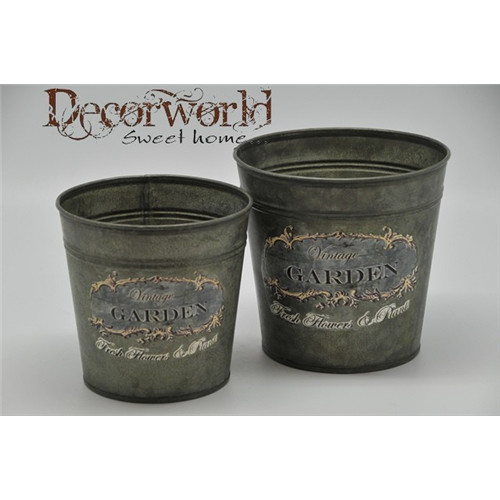 Kaspó kerek felirattal fém 12cm szürke kicsi