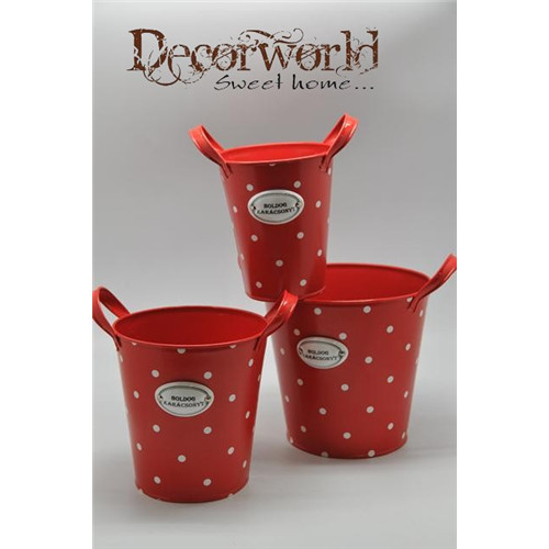 Kaspó füllel kerek pöttyös fém S-es