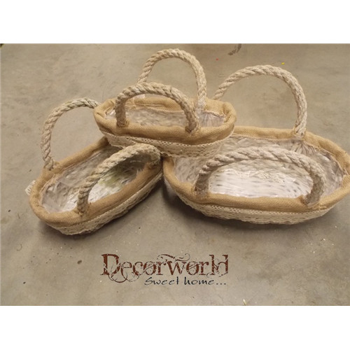 Kosár vessző ovális 2 füles csipkés szegéllyel barna-szürke S