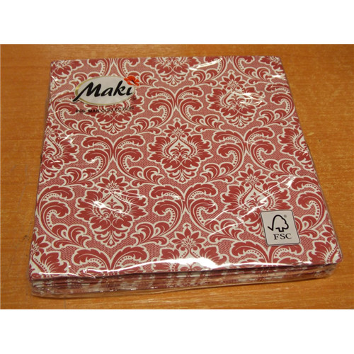 Maki szalvéta 20db/cs. piros, barokkmintás 33x33cm