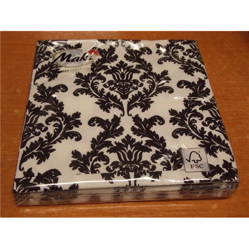 Maki szalvéta 20db/cs. fehér-fekete barokkmintás 33x33cm