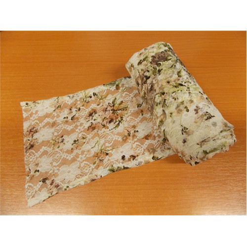 Rugalmas csipke virág mintás fekete-fehér 15cm x 5m