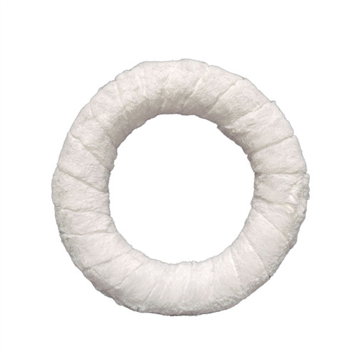 Szőrme szalaggal bevont szalma koszorú 35 cm - Fehér