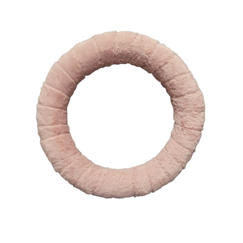 Szőrme szalaggal bevont szalma koszorú 30 cm - Púder rózsaszín