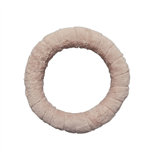 Szőrme szalaggal bevont szalma koszorú 25 cm - Púder bézs