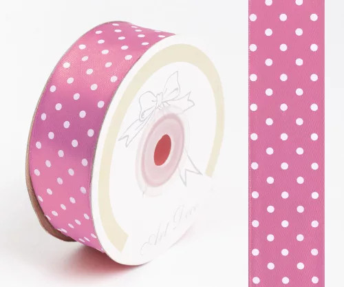 Szalag Szatén Pöttyös 25 mm x 25 m - Sötét rózsaszín
