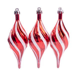 Műanyag gömb csepp alak 4x11cm glitteres - Piros S/3