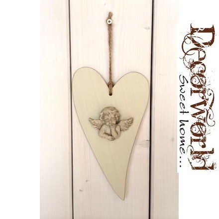 Fa szív natúr angyallal 13,5x25cm