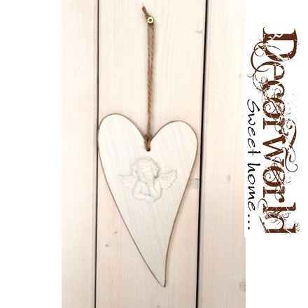 Fa szív fehér angyallal 13,5x25cm