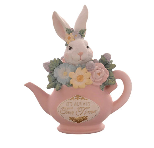 Nyúl teáskannában poly 14,2cm - Rózsaszín