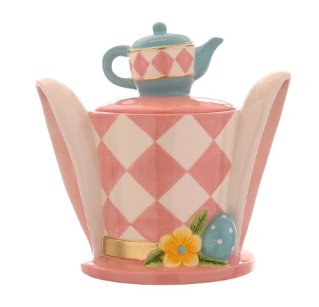 Sütemény tartó nyúl kalap teáscsészével kerámia 26cm