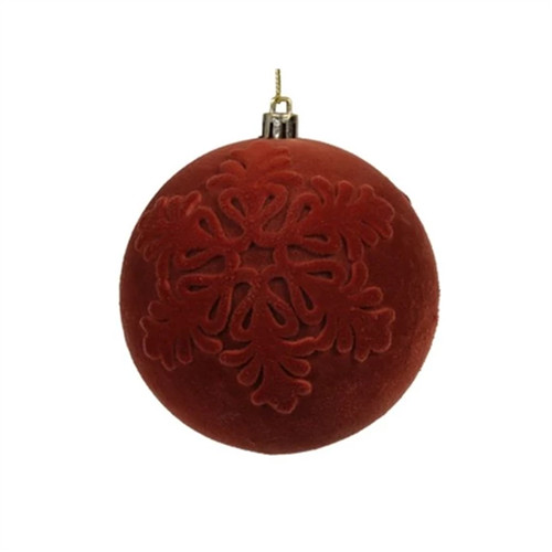 Gömb műanyag flokkolt hópehely mintával 10cm - Rozsdabarna S/2