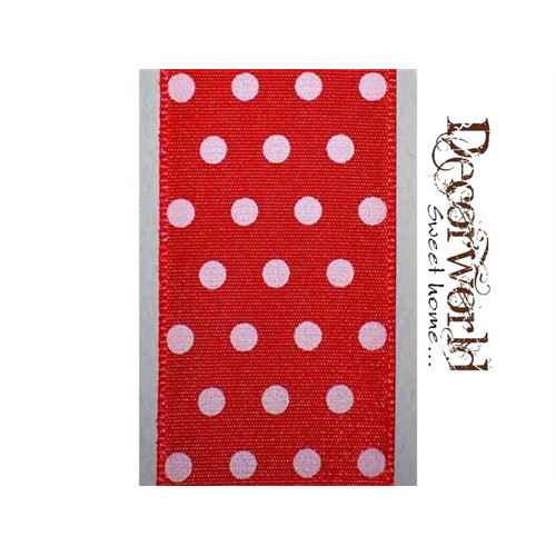 Szatén szalag pöttyös piros 4cm/10m