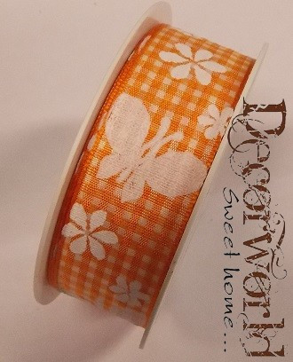 I m Grünen szalag kockás-pillangós textil 25mmx10m - Narancs-fehér