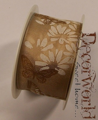 Zauberhaft szalag virágos-pillangós textil 40mmx10m - Barna-fehér