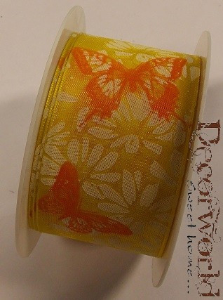 Zauberhaft szalag virágos-pillangós textil 40mmx10m - Sárga-fehér