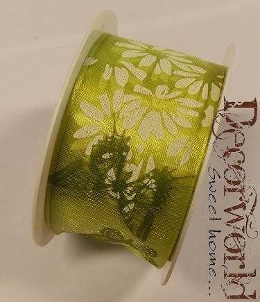 Zauberhaft szalag virágos-pillangós textil 40mmx10m - Zöld-fehér