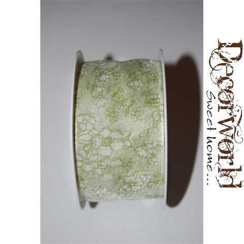 Campanula szalag virágos textil 40mmx10m zöld-fehér