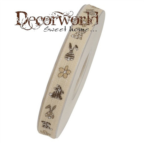 Szalag Osterzeit nyulas textil 15mmx10m sárga