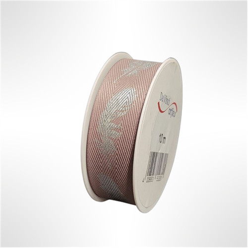 Szalag tollal textil 25mm x 10m barna-ezüst