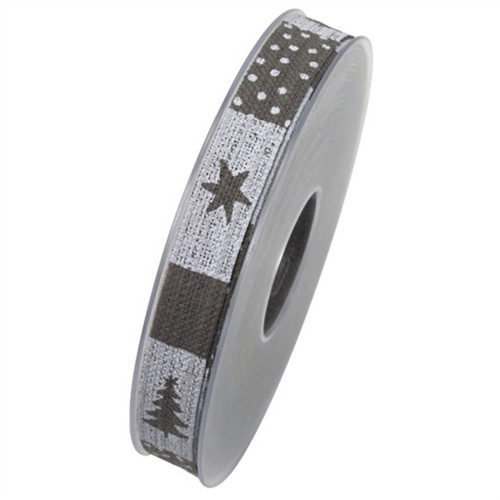 Szalag textil fenyőfával 15mmx8m - Szürke