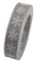 Szalag fehér hópihével 25mm x 10m ezüst