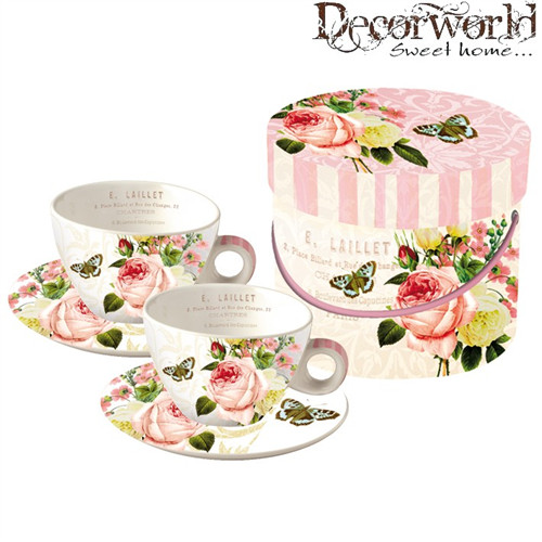 PPD Cappucino csésze szett/2 alátéttel díszdobozban Jardin Rose