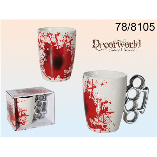 Fehér Kerámia Bögre, vérföltos, bokszer, 12,5x11cm