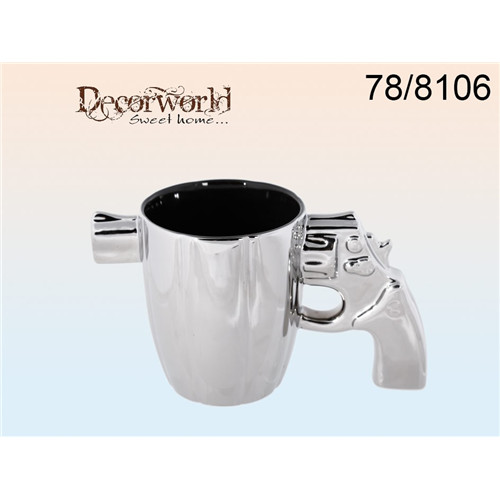Ezüst kőbögre, Revolver fogantyús, 18x10cm