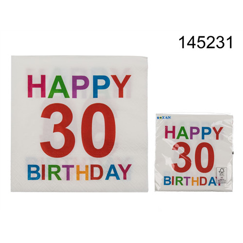 Szalvéta "Happy birthday 30" színes 33x33cm 3 réteg 20db/cs