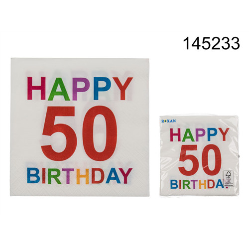 Szalvéta "Happy birthday 50" színes 33x33cm 3 réteg 20db/cs