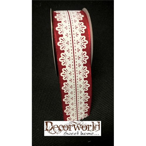 Csipke mintás szalag fehér/piros 38mm x 10m drótos