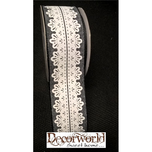 Csipke mintás szalag fehér/szürke 38mm x 10m drótos