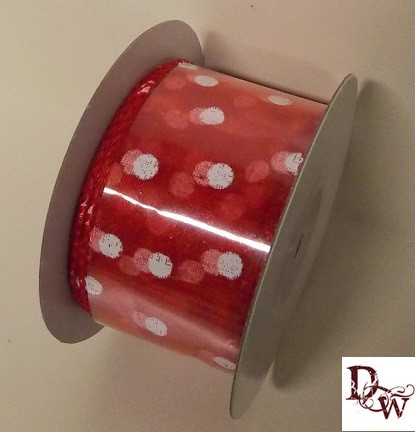 Organza szalag piros, fehér pöttyös drótos 38mm/10m
