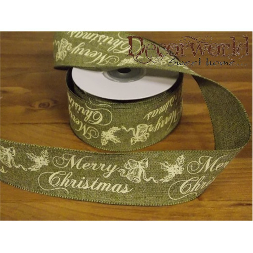 Dekorációs szalag zöld feliratos "Merry Christmas" 38mm x 10m
