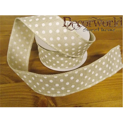 Dekorációs szalag krém, pöttyös 38mm x 10m