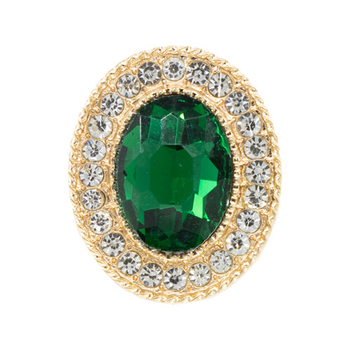 Strasszal kirakott bross ovál alak 24x20 mm - Sötétzöld/Ezüst/Arany /DB