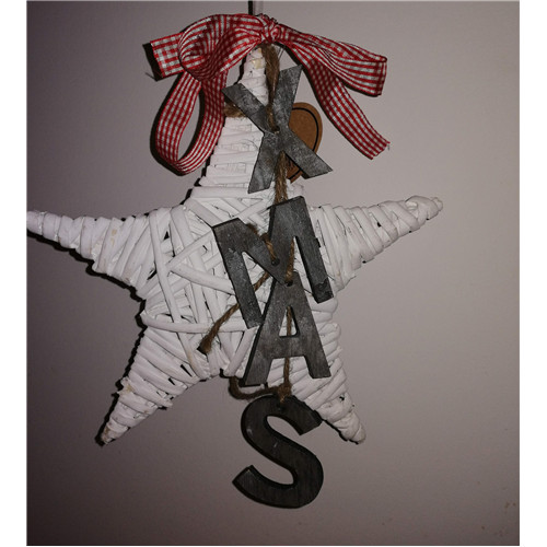 Vessző csillag piros szalagon 25cm XMAS betűkkel