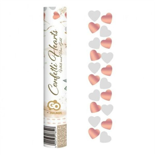 Konfetti ágyó szívekkel 30 cm - Rosegold-fehér