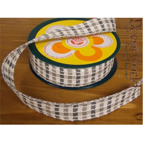 Textil szalag szürke-fehér kockás 2,5cm x 10m
