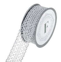 Textil szalag horlgolt mintás 4cm/5m fehér/ezüst